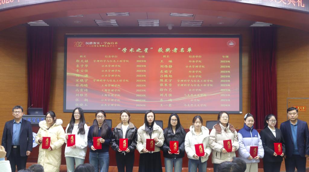 12月17日,我校2025年研究生学术节闭幕式暨“学术之星”“实践之星”颁奖典礼,在国际学术报告厅隆重举行。校党委常委、副校长王重润出席并讲话。suncitygroup太阳集团院长刘东英主持闭幕式,党支部书记张健宣读获奖名单。各研究生培养单位院(所)长、主管研究生工作副院(所)长、导师组组长,本届“学术之星”“实践之星”获得者及导师代表,2024、2025级研究生代表参加。
